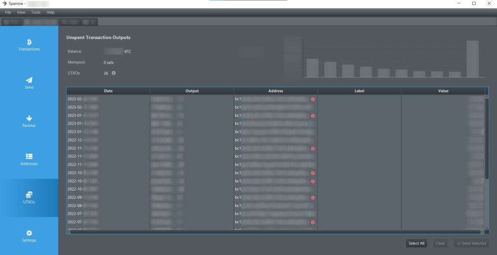 - Use a wallet with ‘coin control’ features: some Bitcoin wallets automatically pick UTXOs to use in a transaction according to their coin selection algorithm, which can optimize for the lowest fee (minimum number of UTXOs), lower fees in the future (combining many UTXOs), or systems like ‘first in first out’ which spends the oldest coins first. Some more complex wallets allow for more granular control of UTXOs, allowing privacy-minded users to label and freeze certain outputs and select which ones to use in a transaction. Coin control features are available with Sparrow Wallet on desktop and Samourai Wallet on Android and were recently added to Trezor Suite and Ledger Live.
