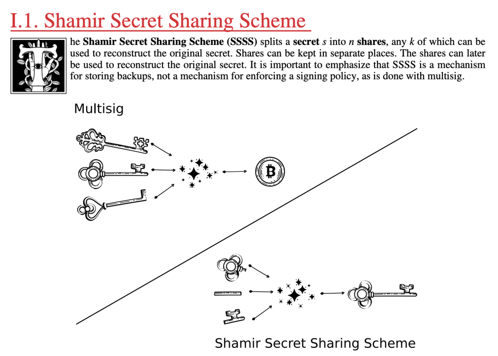 To split the wallet seed, Codex32 integrates Shamir Secret Sharing Scheme. This method allows users to divide the backup of their wallet seed into multiple parts. These parts can be kept in seperate places, providing redundancy and removing single points of failure.